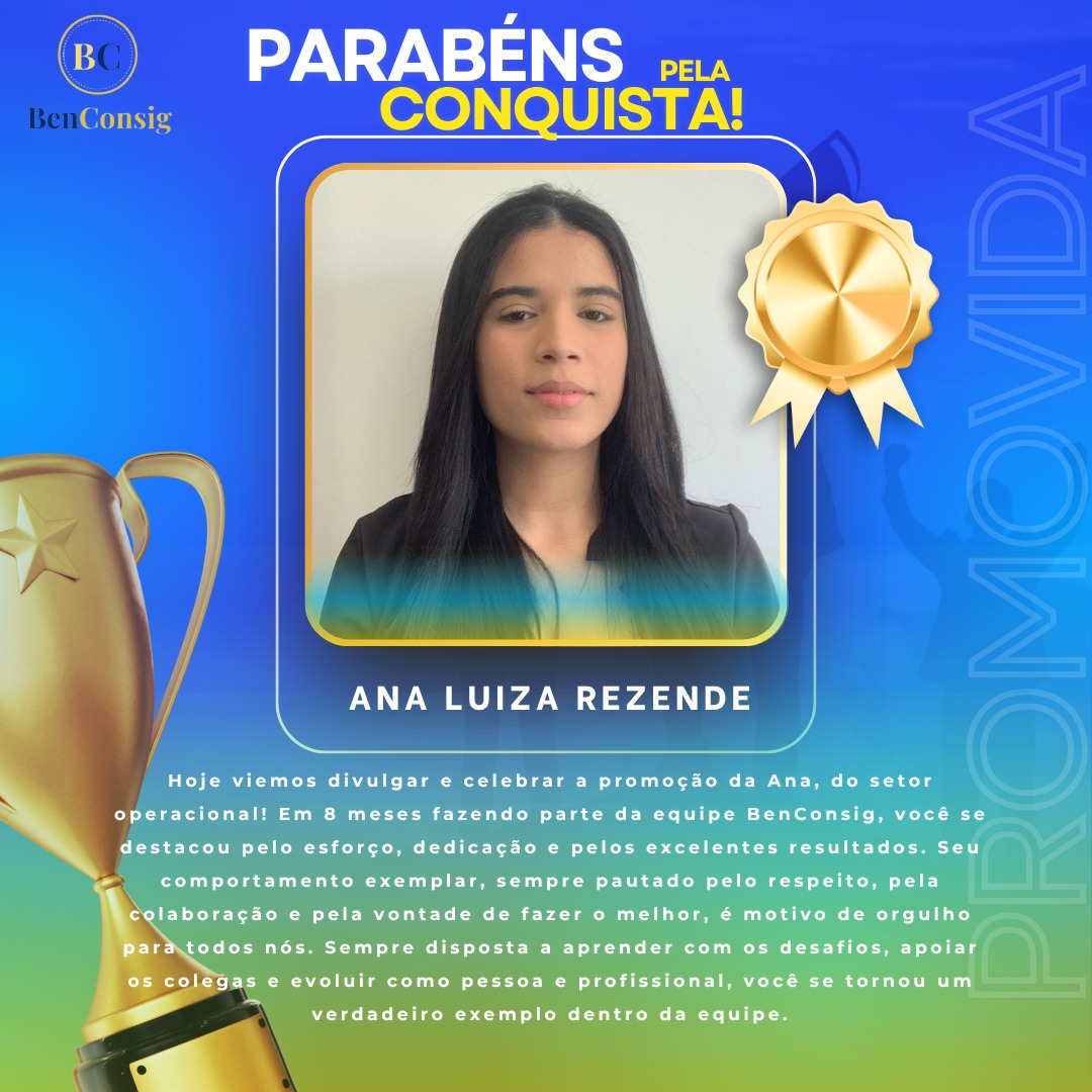 É com grande alegria que anunciamos a promoção de Ana Luiza Rezende ao cargo de Analista Operacional! 👏